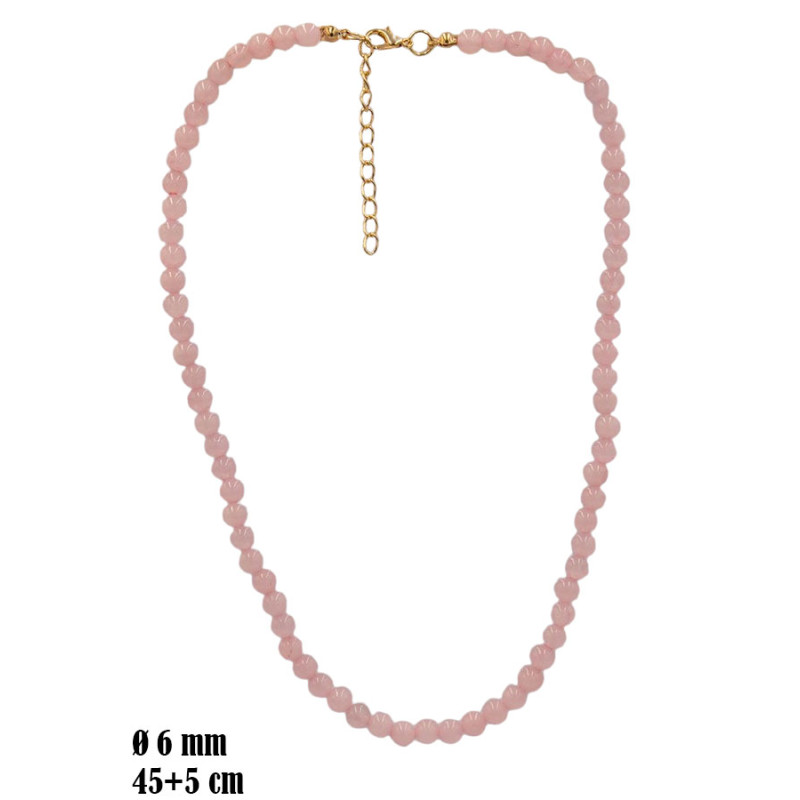 Naszyjnik z kamieni naturalnych – kwarc różowy – Ø 6 mm – 45 + 5 cm