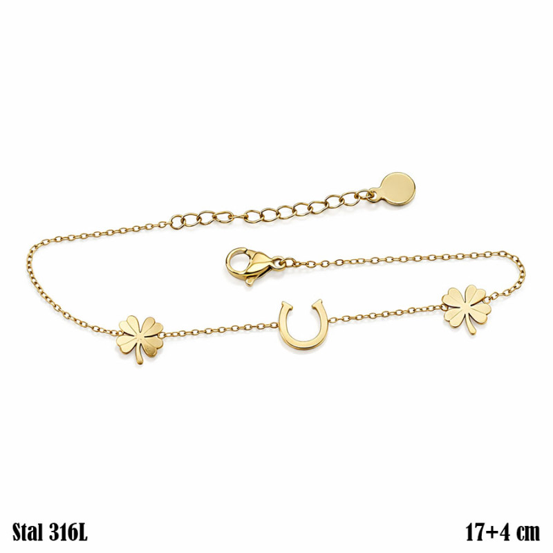Bransoletka stalowa 316L z koniczynką i podkową – symbol szczęścia