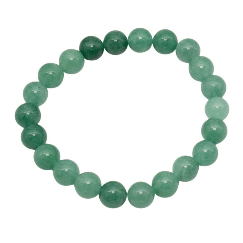 Bransoletka wykonana z gładkich kul o średnicy 8 mm zachwyca jednolitą, nasyconą zielenią. Awenturyn prezentuje subtelne przejścia tonalne – od jaśniejszych, lekko mlecznych odcieni po głębszą, bardziej intensywną barwę. Powierzchnia kamieni jest delikatnie połyskująca, co podkreśla naturalną strukturę i nadaje całości spokojny, harmonijny charakter. Regularny układ koralików tworzy spójną, czystą kompozycję bez dodatkowych zdobień.