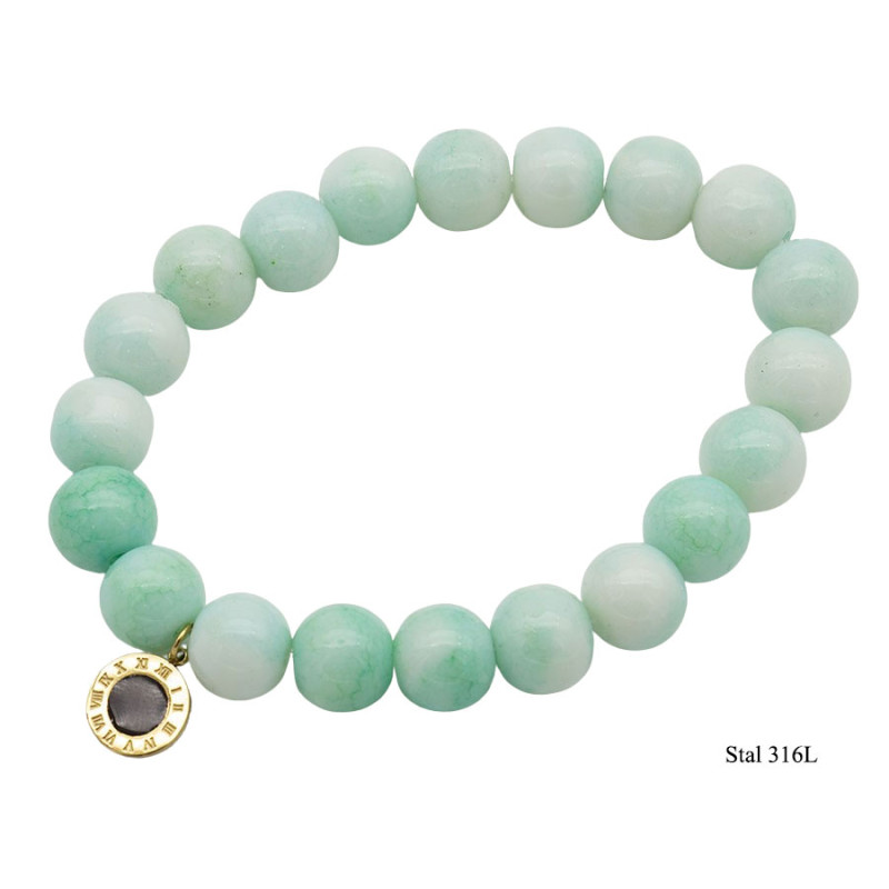 Stylowa bransoletka wykonana z naturalnych kamieni w delikatnym zielonym odcieniu. Subtelna kolorystyka oraz klasyczna forma sprawiają, że biżuteria doskonale pasuje zarówno do codziennych, jak i eleganckich stylizacji.