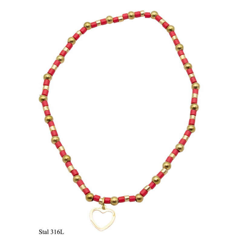 Bransoletka z koralików z zawieszką serca – stal 316L