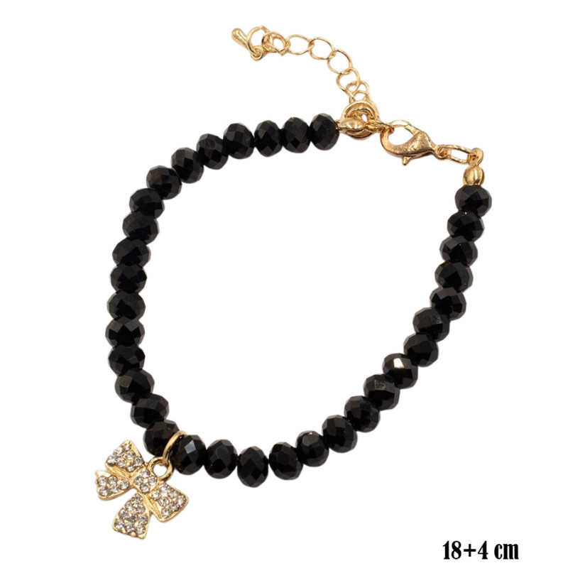 Bransoletka z czarnych koralików i kokardką – regulowana