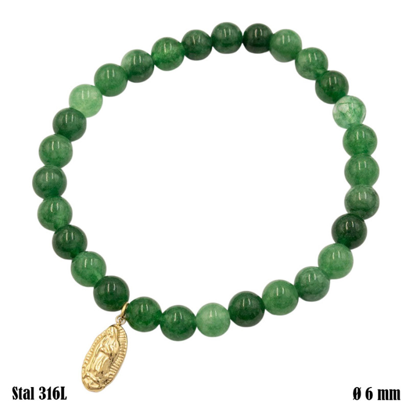 Drobne koraliki o średnicy ok. 6 mm tworzą lekką i elegancką kompozycję, idealną do codziennego noszenia. Całość uzupełnia złota zawieszka, która dodaje bransoletce wyrafinowania i stanowi piękny kontrast dla zieleni.