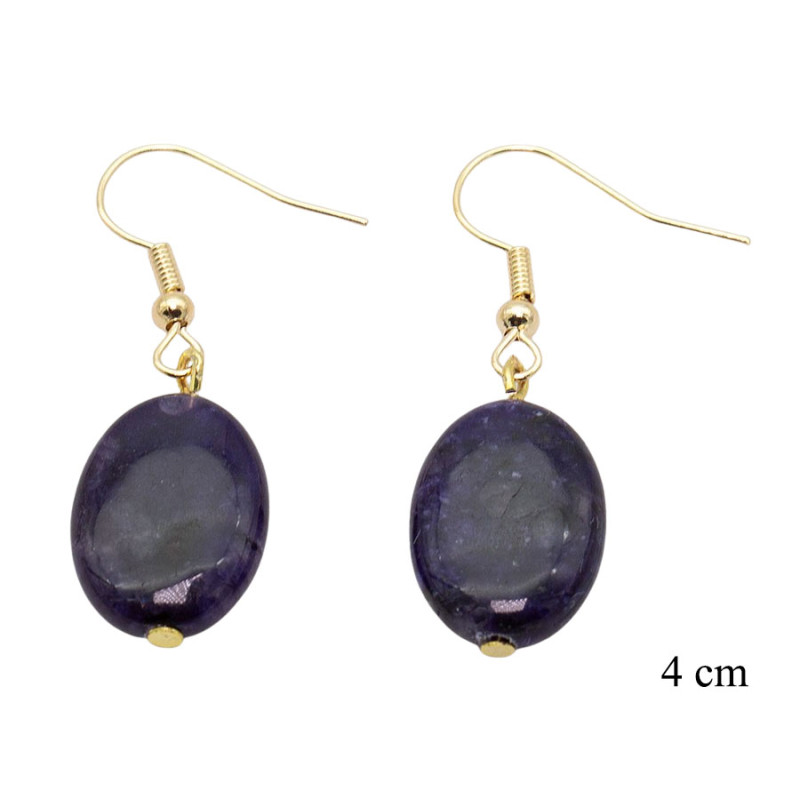 Kolczyki z owalną zawieszką w odcieniu fioletu – elegancka prostota