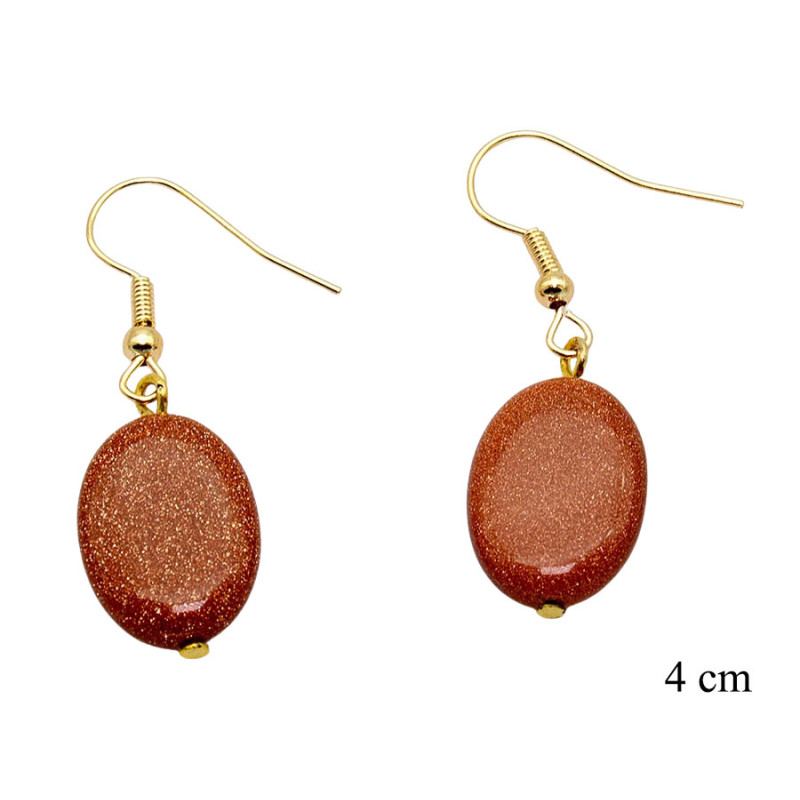 Kolczyki w formie zawieszki wyróżniają się eleganckim, ciepłym odcieniem brązu z delikatnym, mieniącym się efektem. Owalna zawieszka posiada drobno połyskującą strukturę, która subtelnie odbija światło i nadaje biżuterii wyjątkowego charakteru.