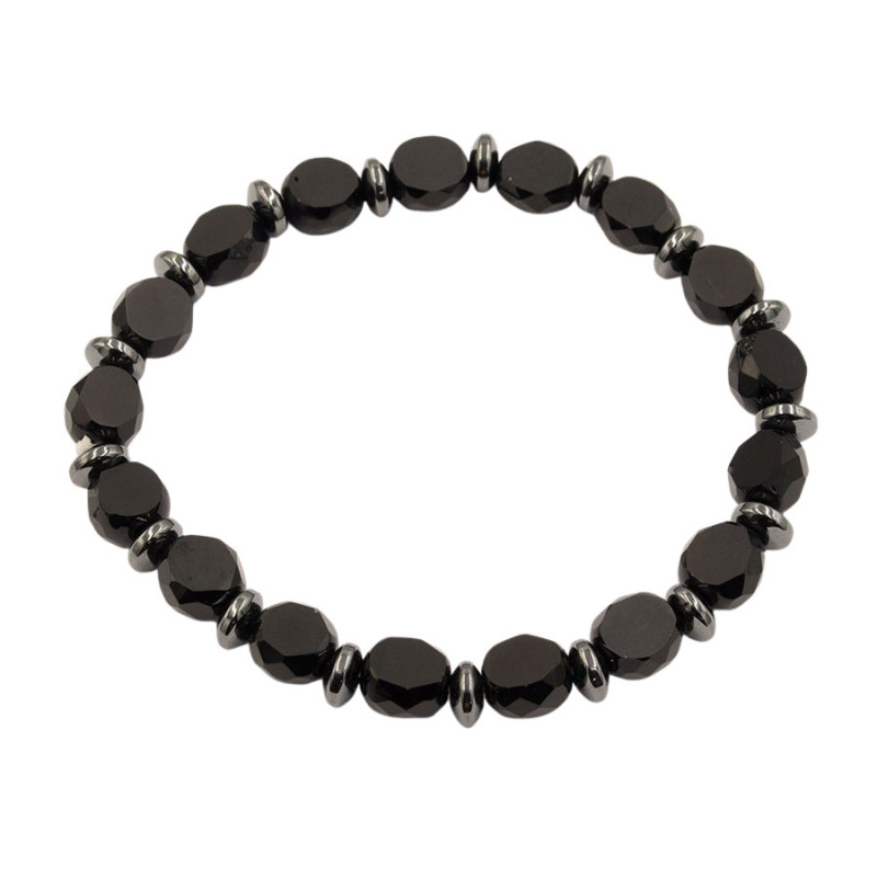 Elegancka bransoletka wykonana z czarnych koralików o dwóch wykończeniach – matowym i błyszczącym, które razem tworzą nowoczesny i stylowy efekt.