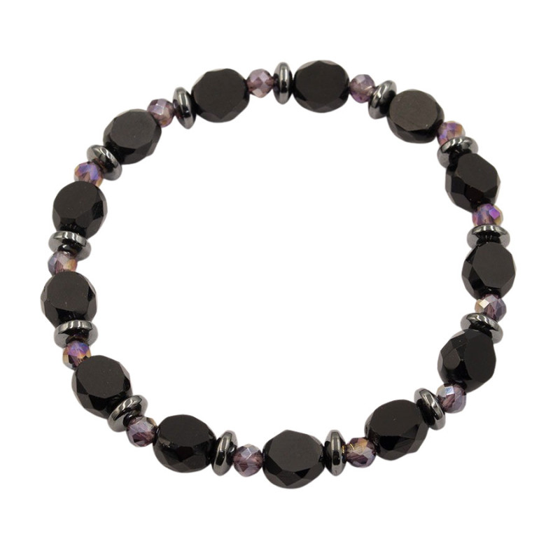 Bransoletka czarna – pół mat / pół błyszcząca z fioletowym akcentem
