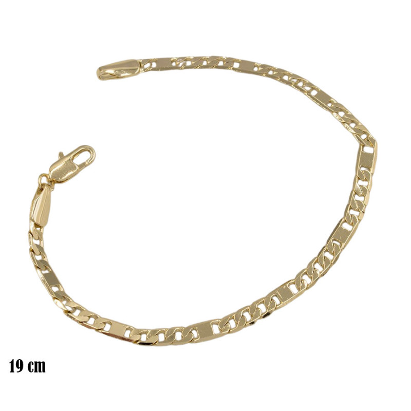 Klasyczna bransoletka wykonana z pozłacanej miedzi, o ponadczasowym splocie typu figaro. Naprzemienne, wydłużone i krótsze ogniwa nadają jej elegancki, a zarazem uniwersalny charakter.