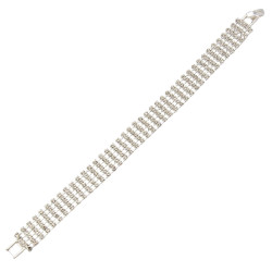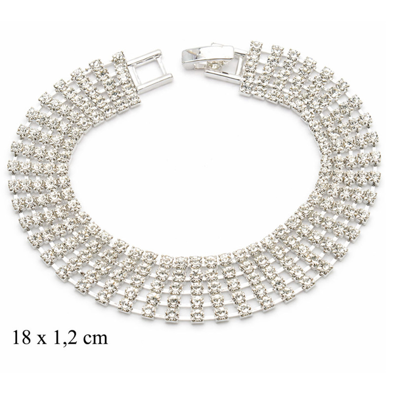 Elegancka bransoletka o delikatnej, wachlarzowej formie, zdobiona lśniącymi kryształkami. Starannie ułożone rzędy tworzą efekt lekkiej kaskady, która pięknie układa się na nadgarstku i subtelnie odbija światło.