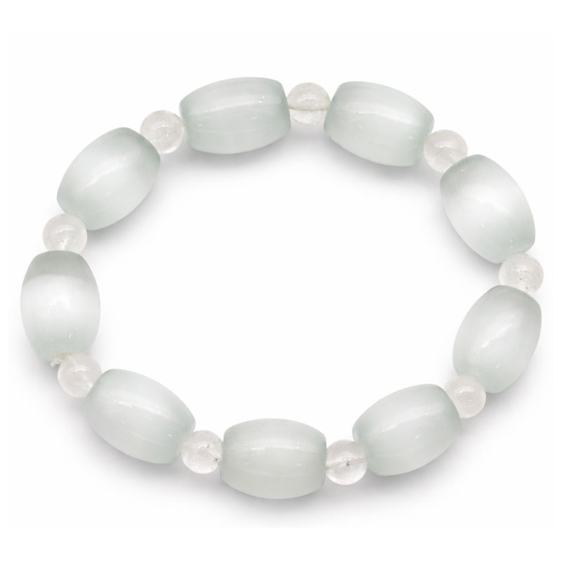 Delikatna bransoletka w jasnej, mlecznej tonacji, która zachwyca swoją lekkością i elegancją. Owalne koraliki w odcieniu pastelowej bieli zostały połączone z drobnymi, transparentnymi kuleczkami, tworząc harmonijną i świeżą kompozycję.
