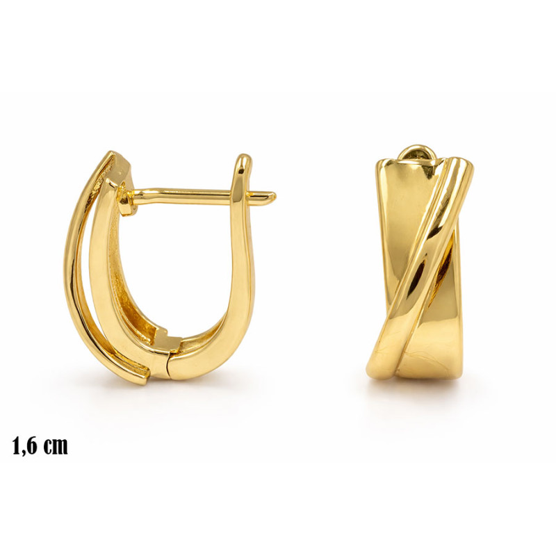 Eleganckie kolczyki o nowoczesnym, geometrycznym kształcie z efektownym skręceniem. Gładka, złota powierzchnia pięknie odbija światło, podkreślając minimalistyczny, a zarazem wyrazisty design.