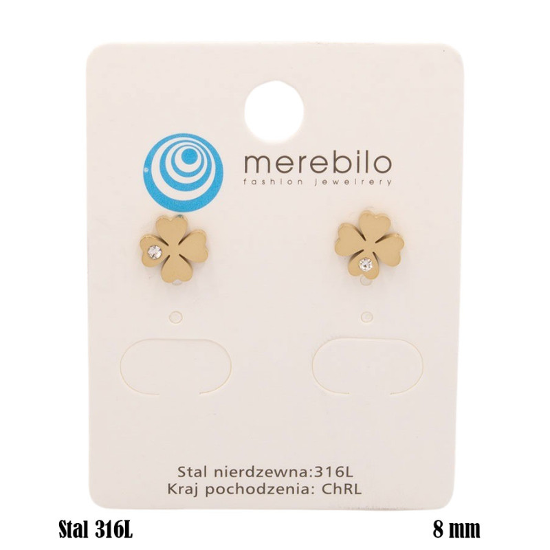 Subtelne kolczyki wykonane ze stali nierdzewnej 316L w złotym kolorze, ozdobione delikatnym motywem czterolistnej koniczynki.