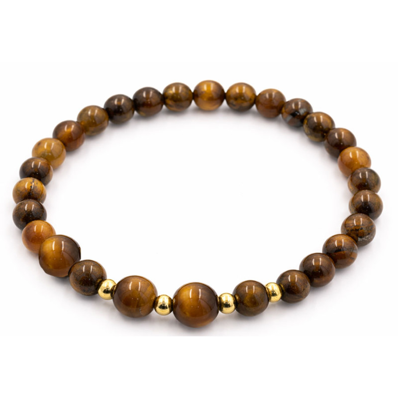 Stylowa bransoletka wykonana z naturalnych kamieni w ciepłych, brązowych tonacjach, które pięknie odbijają światło i nadają biżuterii eleganckiego charakteru.