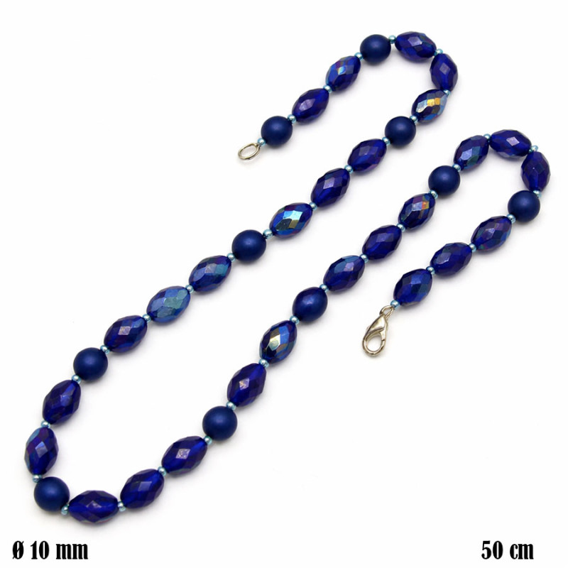 Stylowy naszyjnik wykonany z efektownych koralików w intensywnym, głębokim odcieniu niebieskiego. Połączenie matowych i fasetowanych elementów tworzy ciekawą strukturę oraz piękny, subtelny połysk.