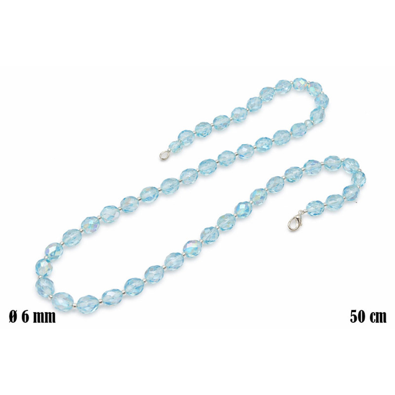Elegancki naszyjnik wykonany z fasetowanych koralików w jasnym, błękitnym odcieniu. Delikatny połysk i subtelna transparentność nadają biżuterii świeżości oraz wyjątkowego, lekkiego charakteru.