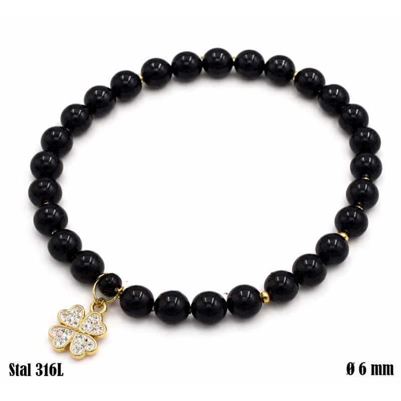 Bransoletka z kamieni naturalnych – klasyczna czerń z koniczynką 🖤🍀
