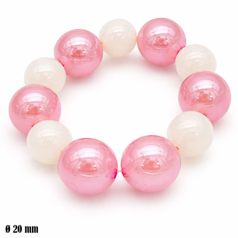 Efektowna bransoletka wykonana z dużych, gładkich koralików o wysokim połysku, utrzymanych w delikatnej i kobiecej palecie różu oraz kremowej bieli. Połączenie transparentnych, różowych kulek z jasnymi akcentami tworzy świeży i stylowy efekt.