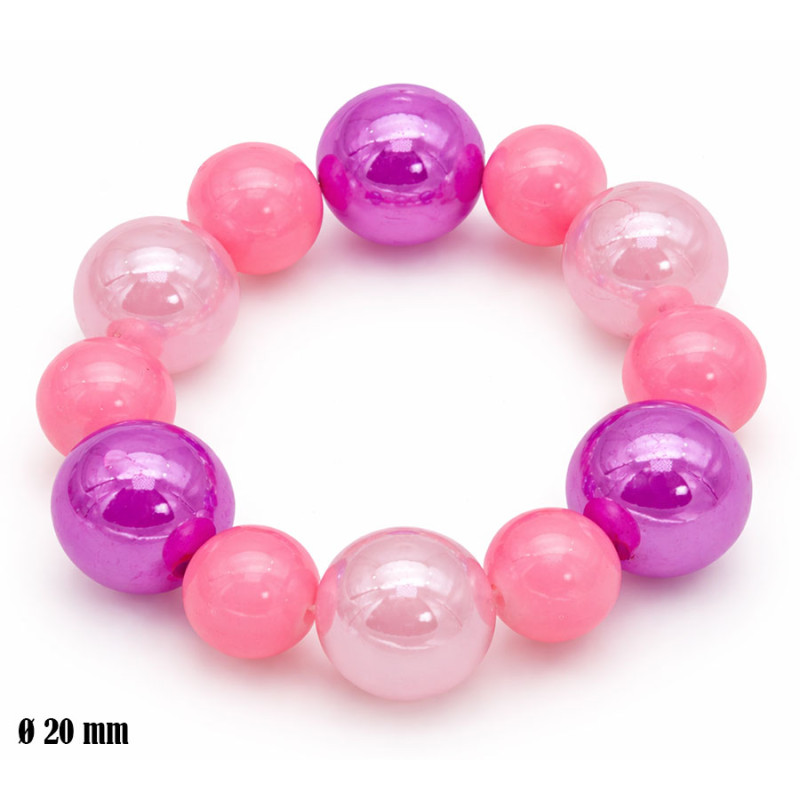 Efektowna bransoletka wykonana z dużych, gładkich koralików o wysokim połysku, łączących odcienie różu i fioletu. Transparentne kule pięknie odbijają światło, tworząc nowoczesny i energetyczny efekt.