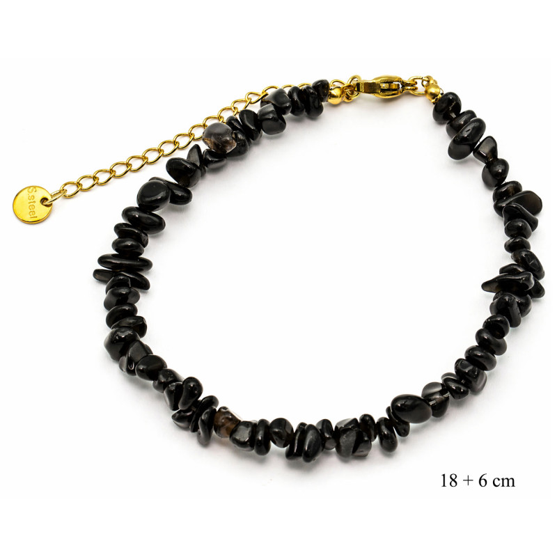 Stylowa bransoletka wykonana z czarnych, nieregularnych kamieni to ponadczasowy dodatek o eleganckim i wyrazistym charakterze. Naturalna forma kamieni nadaje biżuterii unikalności, a głęboka czerń doskonale podkreśla każdą stylizację.