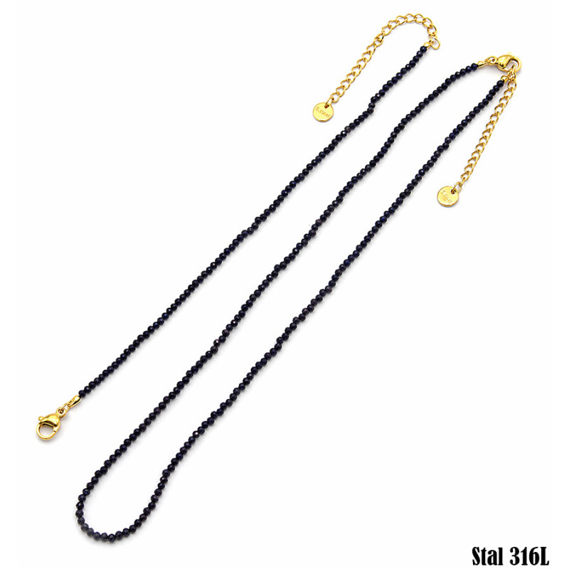 Złote elementy i zapięcia wykonane ze stali chirurgicznej 316L zapewniają trwałość, odporność na ścieranie oraz komfort noszenia. Regulowane przedłużki umożliwiają idealne dopasowanie do szyi i nadgarstka.