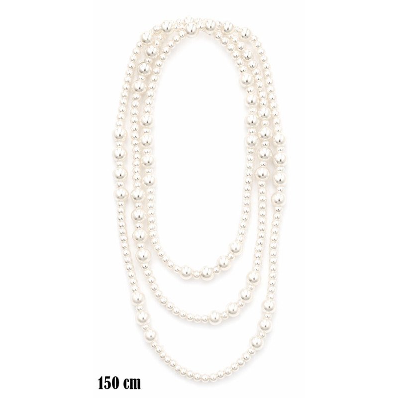 Długi naszyjnik z pereł to ponadczasowa biżuteria, która zachwyca klasycznym wyglądem i uniwersalnością. Starannie dobrane perły o różnych rozmiarach tworzą harmonijną kompozycję, nadając całości elegancki i wyrafinowany charakter.