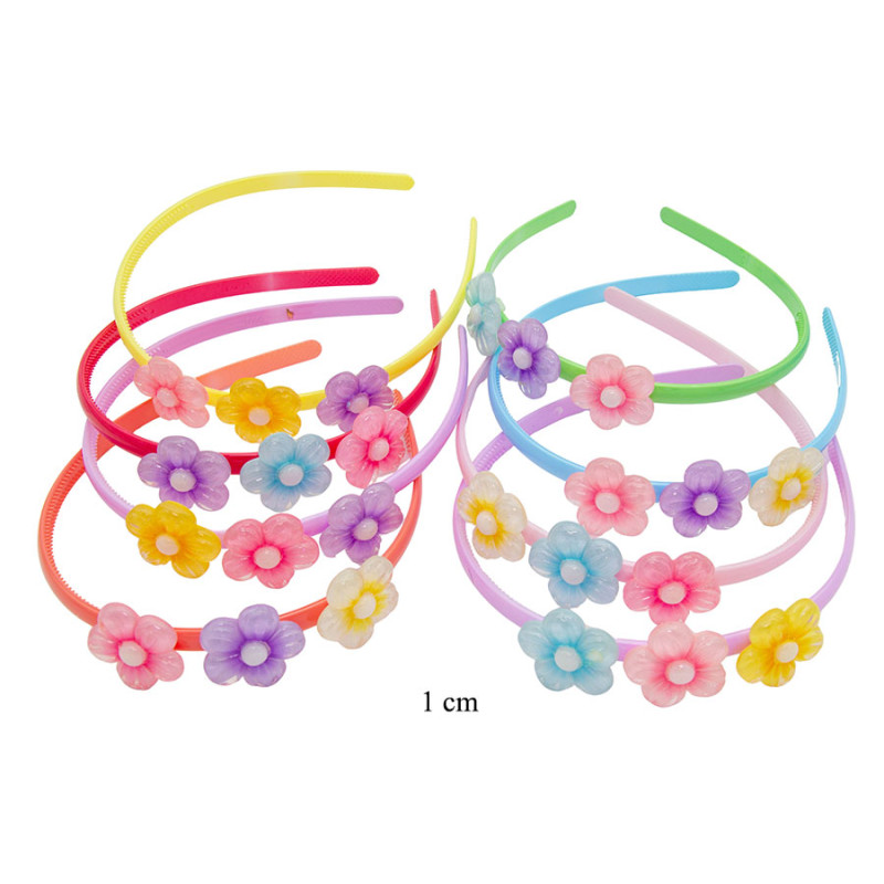 Opaski do włosów z kwiatkami kolorowe – 1 cm