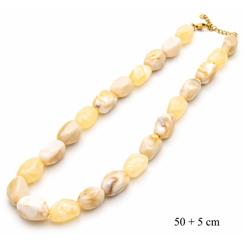 Naszyjnik z dużych koralików kremowo-bursztynowych – 50+5 cm