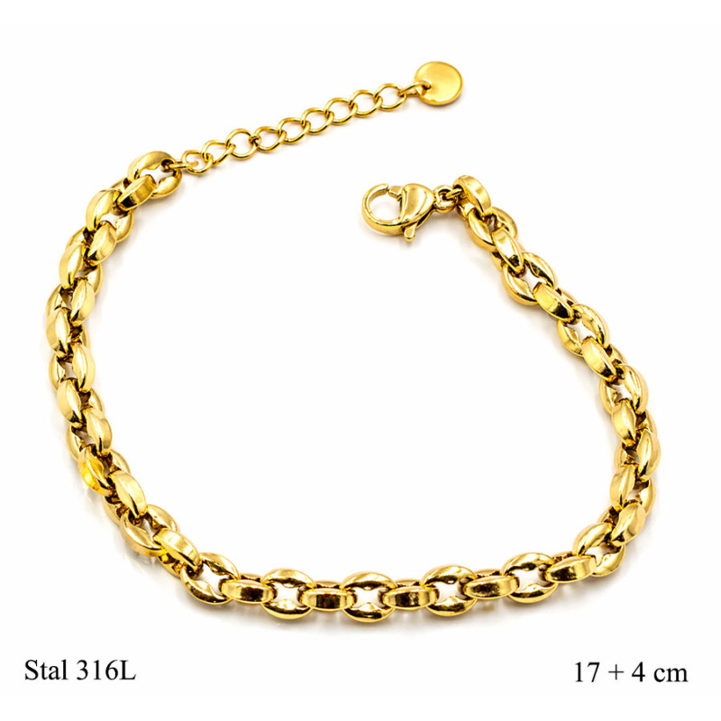 Bransoletka stal 316L złota klasyczny łańcuch 17 + 4 cm