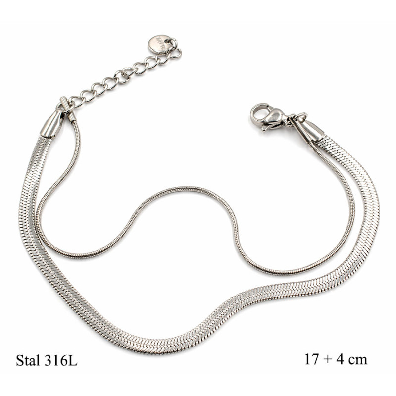 Bransoletka stal 316L srebrna podwójna żmijka 17 + 4 cm