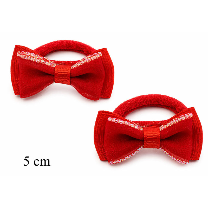 Gumka do włosów z kokardą czerwoną z ozdobnym wykończeniem 5 cm