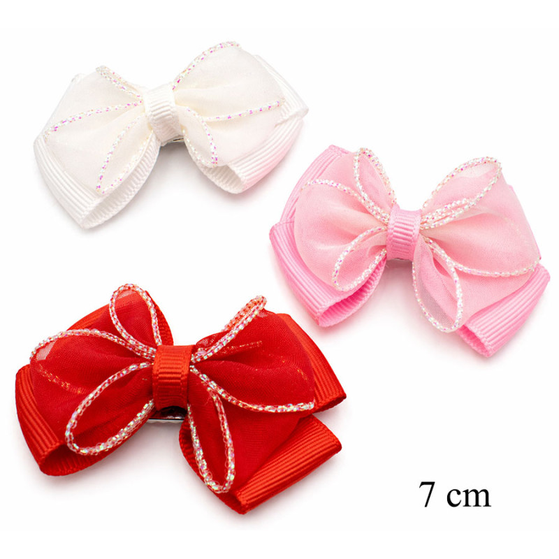 Eleganckie gumki do włosów z efektowną kokardą to wyjątkowy dodatek, który przyciąga uwagę delikatnym połyskiem i starannym wykończeniem. Każda kokarda została ozdobiona subtelną, błyszczącą lamówką oraz dodatkowymi dekoracyjnymi pętelkami, które nadają całości lekkości i dziewczęcego uroku.