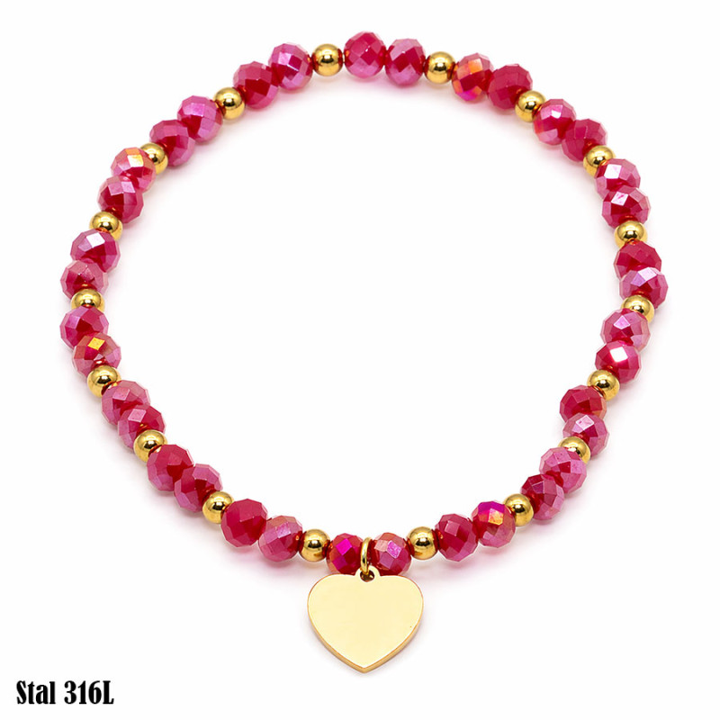 Bransoletka w malinowym odcieniu z fasetowanym połyskiem i sercem