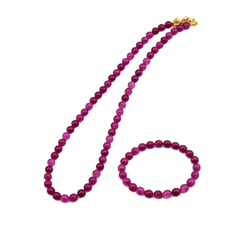 Komplet biżuterii z kamieni naturalnych – agat fuksja – Ø 6 mm