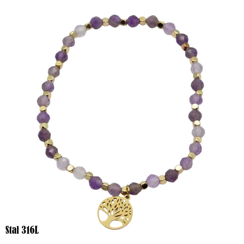 Bransoletka Stal 316L - ametyst - MF37337-K2