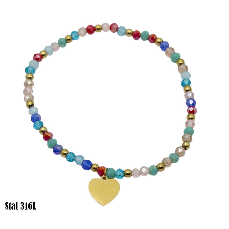 Bransoletka Stal 316L - mix niebieski - serce - MF37338-P1