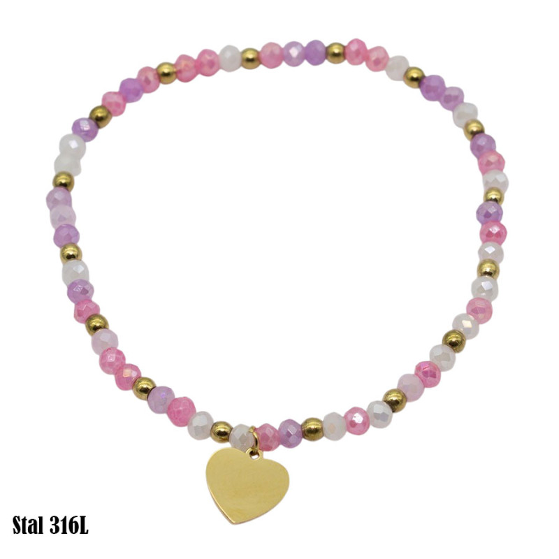 Bransoletka Stal 316L - mix fiolet - serce - MF37338-P4