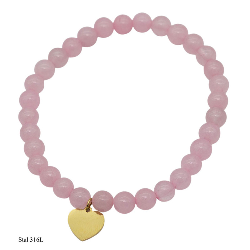 Bransoletka Stal 316L [serduszko] "Różowy Kwarc" - MF39349BPG