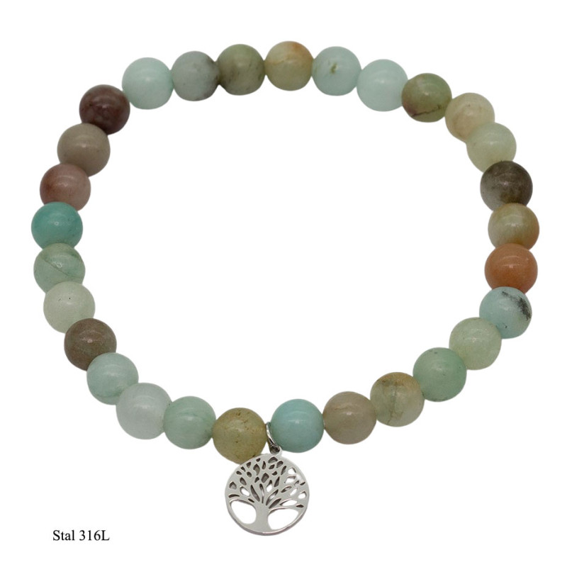 Bransoletka Stal 316L [drzewko szczęścia] "Amazonit" - MF39343EPR