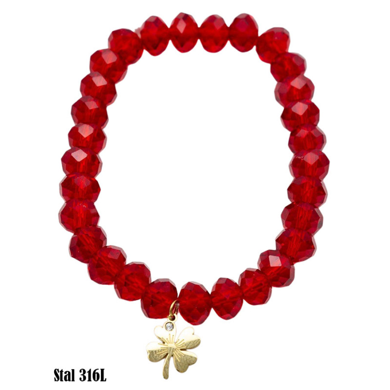 Bransoletka Merebilo Kryształ Stal 316L [koniczynka z dżetem] - MF37338-BB
