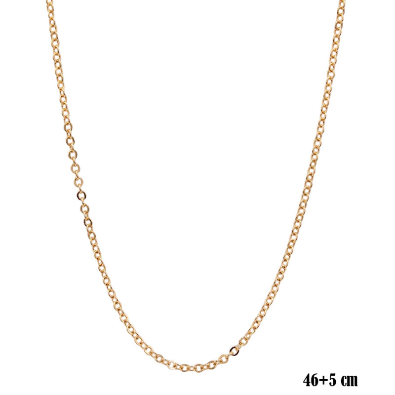 Prosty naszyjnik o wyraźnym, równym splocie przyciąga uwagę ciepłym odcieniem złota i ponadczasową formą. Owalne ogniwa tworzą spójną, harmonijną linię, która subtelnie podkreśla dekolt. Minimalistyczny charakter sprawia, że model prezentuje się lekko i elegancko, bez zbędnych zdobień. Długość 46 cm z przedłużką 5 cm pozwala swobodnie dopasować naszyjnik do różnych fasonów bluzek i sukienek.