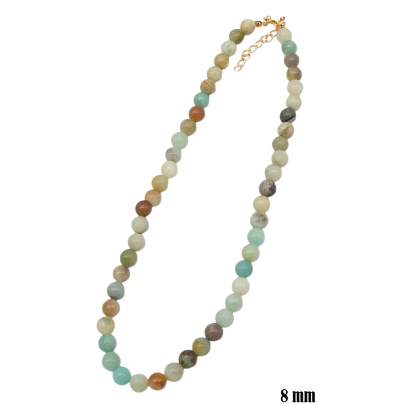 Średnica 8 mm sprawia, że naszyjnik jest dobrze widoczny i może stanowić główny element stylizacji. Pasuje do jasnych koszul, lnianych sukienek i prostych topów. Sprawdzi się w codziennym zestawie, ale również jako spokojne przełamanie eleganckiego stroju. To propozycja, którą hurtownia może wprowadzić jako część kolekcji inspirowanej naturą i ziemistymi tonami. W sklepie internetowym model uzupełni ofertę naszyjników z kamieni o większym formacie. Warto rozważyć go przy budowaniu sezonowej linii w świeżej, zielonej kolorystyce.
