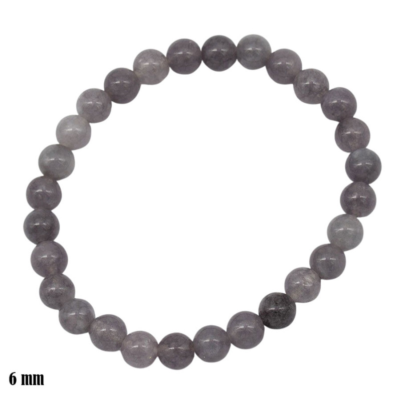 Bransoletka z okrągłych kamieni o średnicy 6 mm prezentuje chłodną, przydymioną paletę barw. Odcienie szarości przechodzą od jasnych, mlecznych tonów po głębsze grafitowe akcenty, tworząc subtelną i spójną kompozycję. Gładkie, lekko połyskujące kulki nadają całości elegancki charakter, a delikatne różnice tonalne podkreślają naturalny wygląd kamieni. Regularny układ koralików sprawia, że bransoletka estetycznie układa się na nadgarstku i dobrze komponuje z prostymi formami.