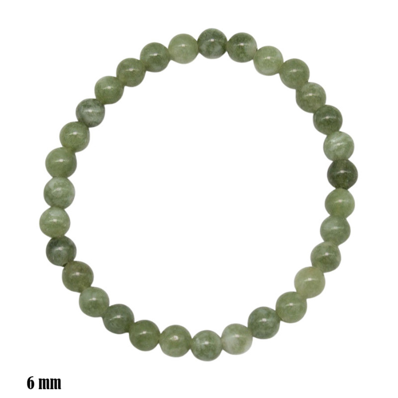 Bransoletka z okrągłych kamieni o średnicy 6 mm prezentuje naturalną, stonowaną zieleń. Odcienie przechodzą od jasnych, lekko mlecznych tonów po głębsze, bardziej nasycone fragmenty, tworząc subtelną grę barw na całym obwodzie. Gładkie, delikatnie połyskujące kulki mają jednolitą, estetyczną formę i układają się w harmonijny okrąg. Model wygląda lekko i uporządkowanie, dzięki czemu dobrze wpisuje się w minimalistyczne stylizacje.