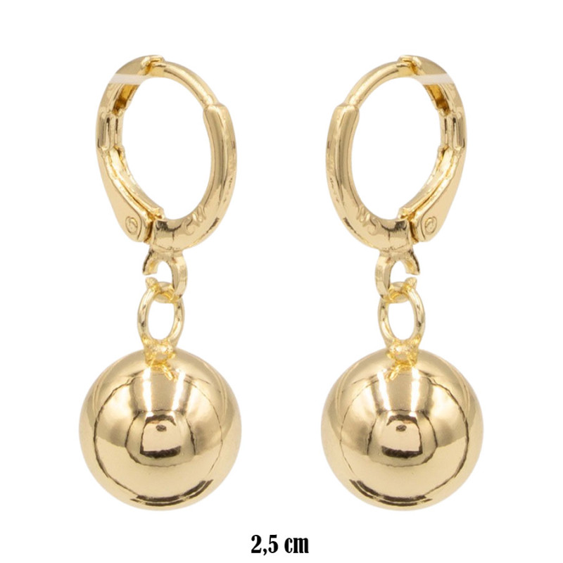 Kolczyki o długości 2,5 cm łączą prostą, zamkniętą obręcz z efektowną, gładką kulką zawieszoną na ruchomym ogniwie. Lśniąca powierzchnia odbija światło i podkreśla minimalistyczny charakter modelu. Niewielki rozmiar sprawia, że kolczyki są wyraziste, a jednocześnie zachowują lekkość i proporcję odpowiednią do codziennych stylizacji.