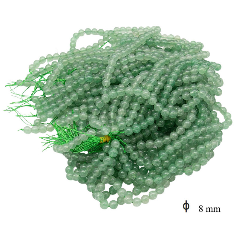 Sznur kulistych koralików o średnicy 8 mm przyciąga uwagę delikatnym, zielonym kolorem o lekko mlecznej, półtransparentnej strukturze. Każda kulka ma gładką powierzchnię i subtelny połysk, który miękko odbija światło. Odcień utrzymany jest w spokojnej, roślinnej tonacji, co nadaje całości świeży, naturalny charakter. Regularny kształt koralików pozwala tworzyć równe, estetyczne projekty biżuterii.
