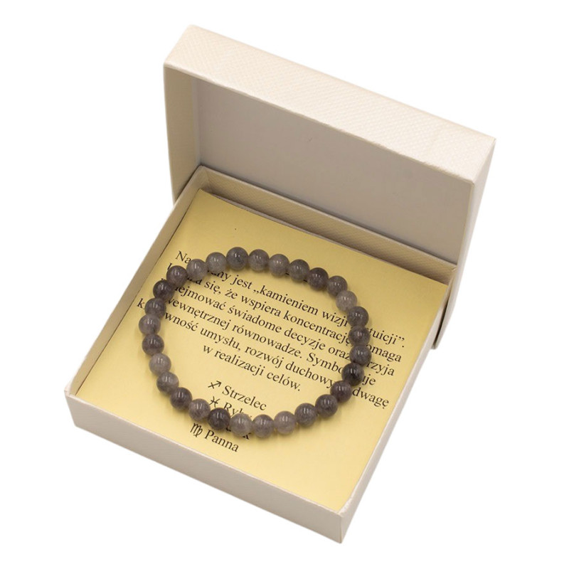 Bransoletka nawleczona jest na elastyczną, wytrzymałą gumkę jubilerską, co zapewnia komfort noszenia oraz łatwe dopasowanie do nadgarstka. Całość zapakowana jest w estetyczne pudełko prezentowe z kartą informacyjną opisującą symbolikę kamienia.