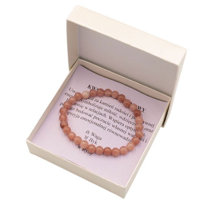 Bransoletka nawleczona jest na elastyczną, wytrzymałą gumkę jubilerską, co zapewnia wygodę noszenia oraz uniwersalne dopasowanie do nadgarstka. Całość zapakowana jest w estetyczne pudełko prezentowe z kartą informacyjną opisującą symbolikę kamienia.