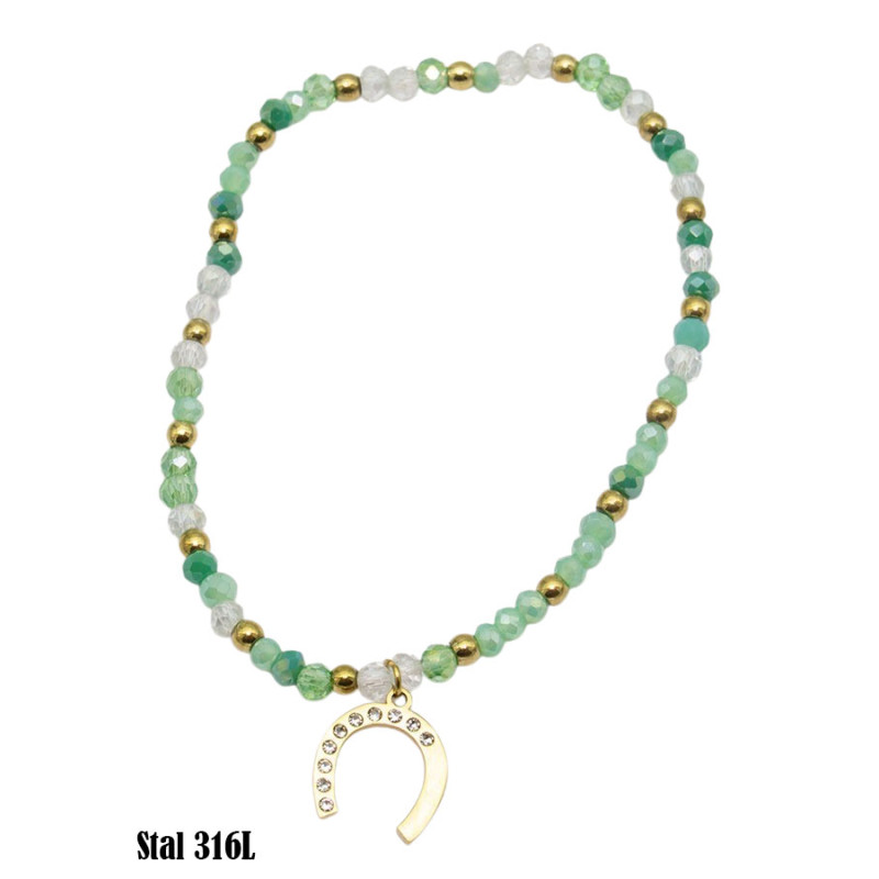 Fasetowane koraliki efektownie odbijają światło, nadając biżuterii lekkości i delikatnego blasku. Motyw podkowy symbolizuje szczęście, ochronę oraz pomyślność, dzięki czemu bransoletka może pełnić rolę stylowego talizmanu.